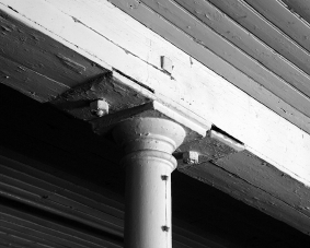 Yksityiskohta TR 2:n kattorakenteesta. Valurautapylväs kannattelee puista kattopalkkia. Kuva:Työväen keskusmuseo. | ||||||