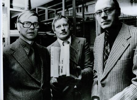 Suomen työväen henkinen perinne -julkaisusarjan toimituskunta. Vasemmalla Matti Nieminen, Heimo Huhtanen ja Matti Hako
